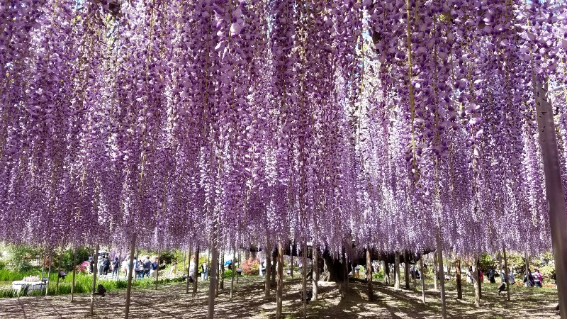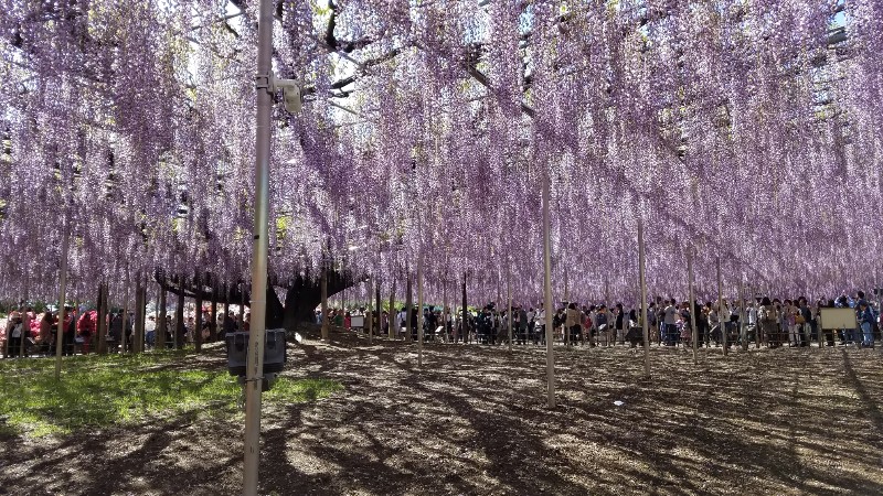 大藤を見たいと友人がはるばる来てくれたので、久しぶりに足利フラワーパークへ行ってきました。丁度満開で素晴らしく綺麗でした。こんなにベストな咲き頃を見たのは初めてでした。お昼は家で食べて13時頃向かいましたが、予想を上回る車の混雑。電車にするべきだった。と甘さを痛感した矢先、フラワーパーク駅を見るとプラットホームは隙間がないほど人で埋めつくされ、そこからさらに長蛇の列が!?一度や二度の電車では乗れないほど。そこまでに人を呼ぶフラワーパークは本当に凄い。藤の管理をしている方々のプレッシャーも凄いのかな。